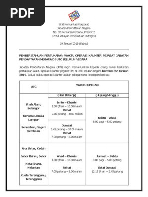 Pemberitahuan Pertukaran Waktu Operasi Kaunter Pejabat Jabatan Pendaftaran Negara Di Utc Seluruh Negara 1 Pdf